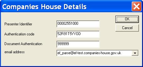 Enter the Presenter ID, Authentication Code and Company Authentication (see below for further details) supplied by companies house. ( You must already have registered with Companies House ). On pressing OK, you will then be prompted for Personal Authentication details (see below for further details):